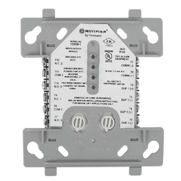 El módulo de entrada y salida múltiple FDRM-1 está diseñado para usarse con los paneles de control de alarma contra incendios Notifier serie Onyx.