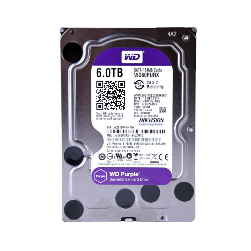 DISCO DURO WESTER DIGITAL 6TB PURPURA PARA VIDEO VIGILANCIA – WD64PURZ